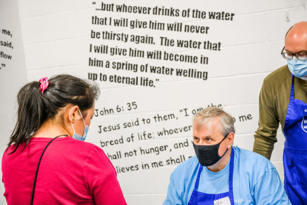 Near the exit, volunteers handed out bagged meals and fulfilled requests for diapers. Here, guests also could leave a prayer request in a box, which was filled by the end of the event.