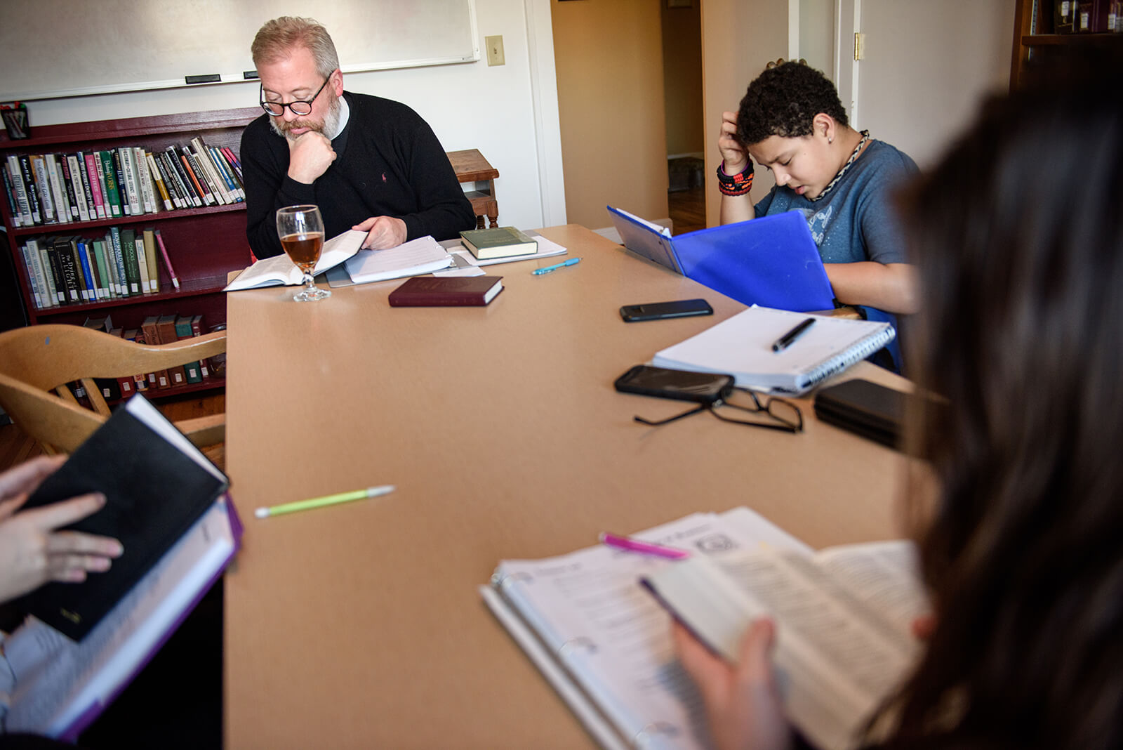 The Rev. David Kind leads a confirmation class at Luther House in February.