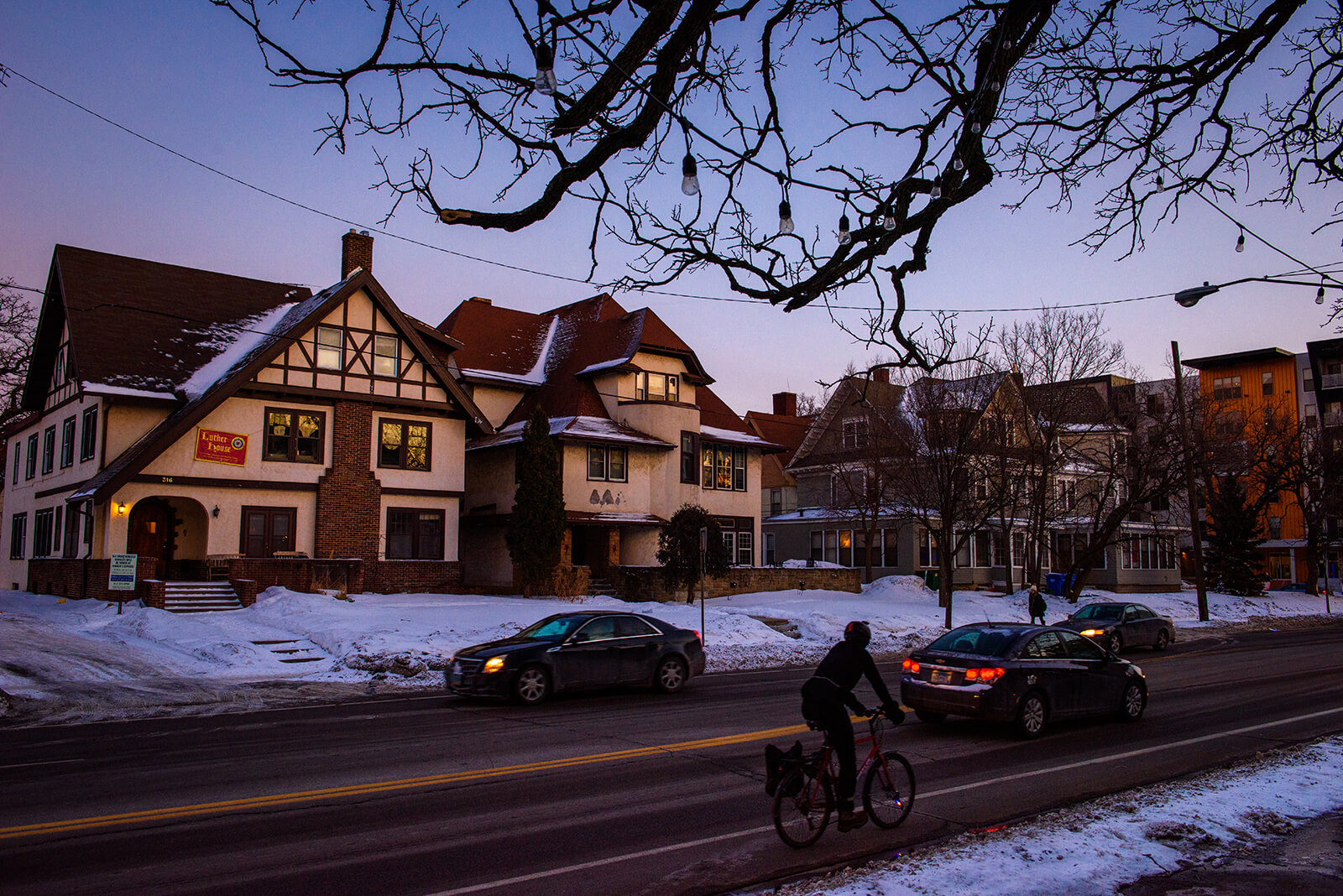 Evening descends over Luther House in February.