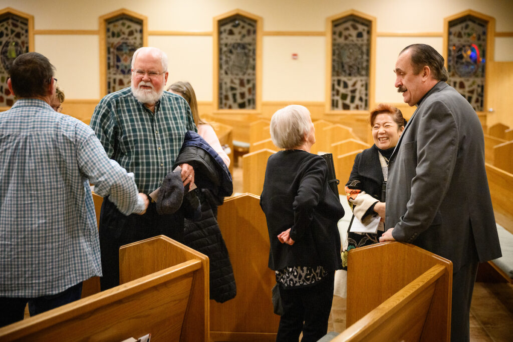 He also serves as vacancy pastor at nearby St. John’s Lutheran Church. On a Wednesday evening in March, Scheer warmly greeted congregation members alongside his wife, Jin, during the weekly Lenten soup dinner.