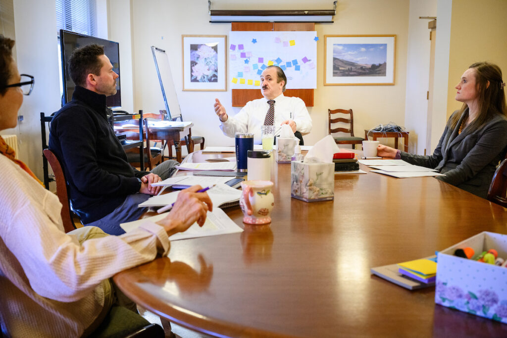 The next morning, Scheer sat down at Providence with three fellow chaplains and listened intently as they discussed a group reading from their CPE course. On some days, Scheer shadows the chaplains during hospital visits and helps them understand how they can better serve the patients.