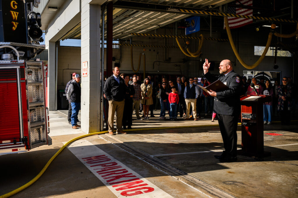 On the morning of the dedication, Loman assisted with the event, and then the crowd pushed the truck into the garage as it formally began its service in the community.