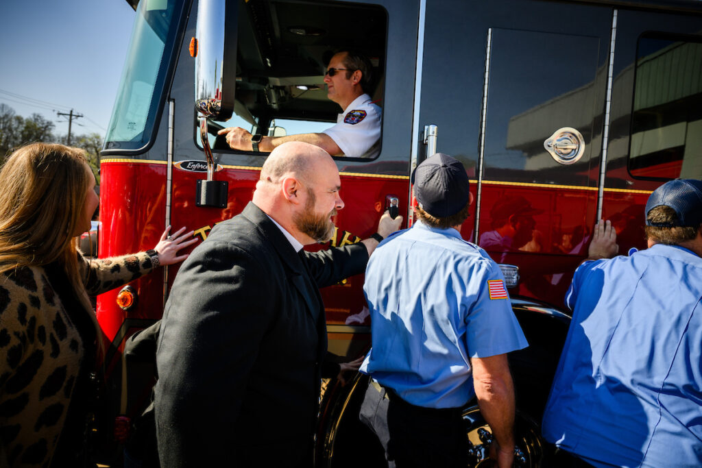 After the truck dedication, Loman took his family out for pizza as they prepared to leave town for a pastors’ conference. Just as they drove away, the radio squawked. It was a structure fire. But Loman can’t take this one, and that’s OK. It’s all part of the balance that he deals with every day.
