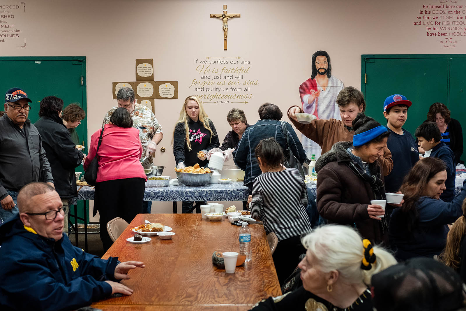 Visitors wait for the evening meal at Family of God.
