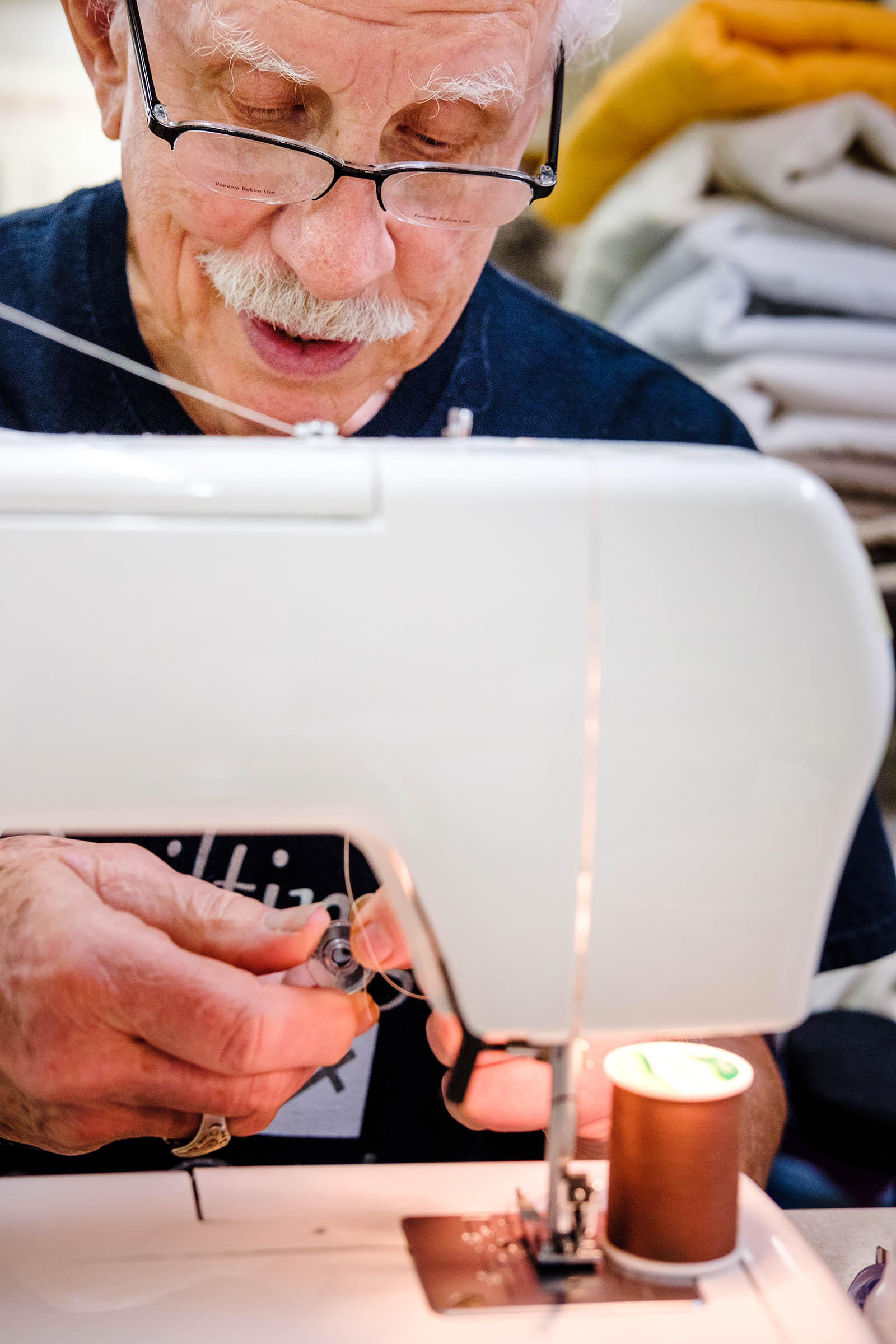 “I never thought at 85 I’d be sewing,” says church member Gary Reynolds.