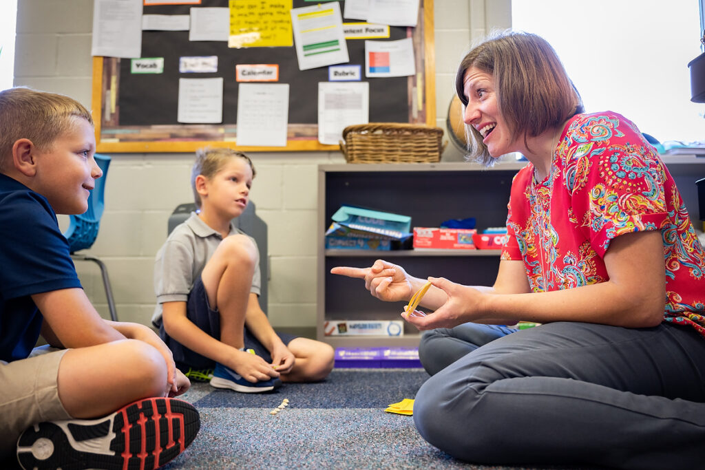 Teacher Kayla Marty works with students in her classroom at Concordia Ignite.