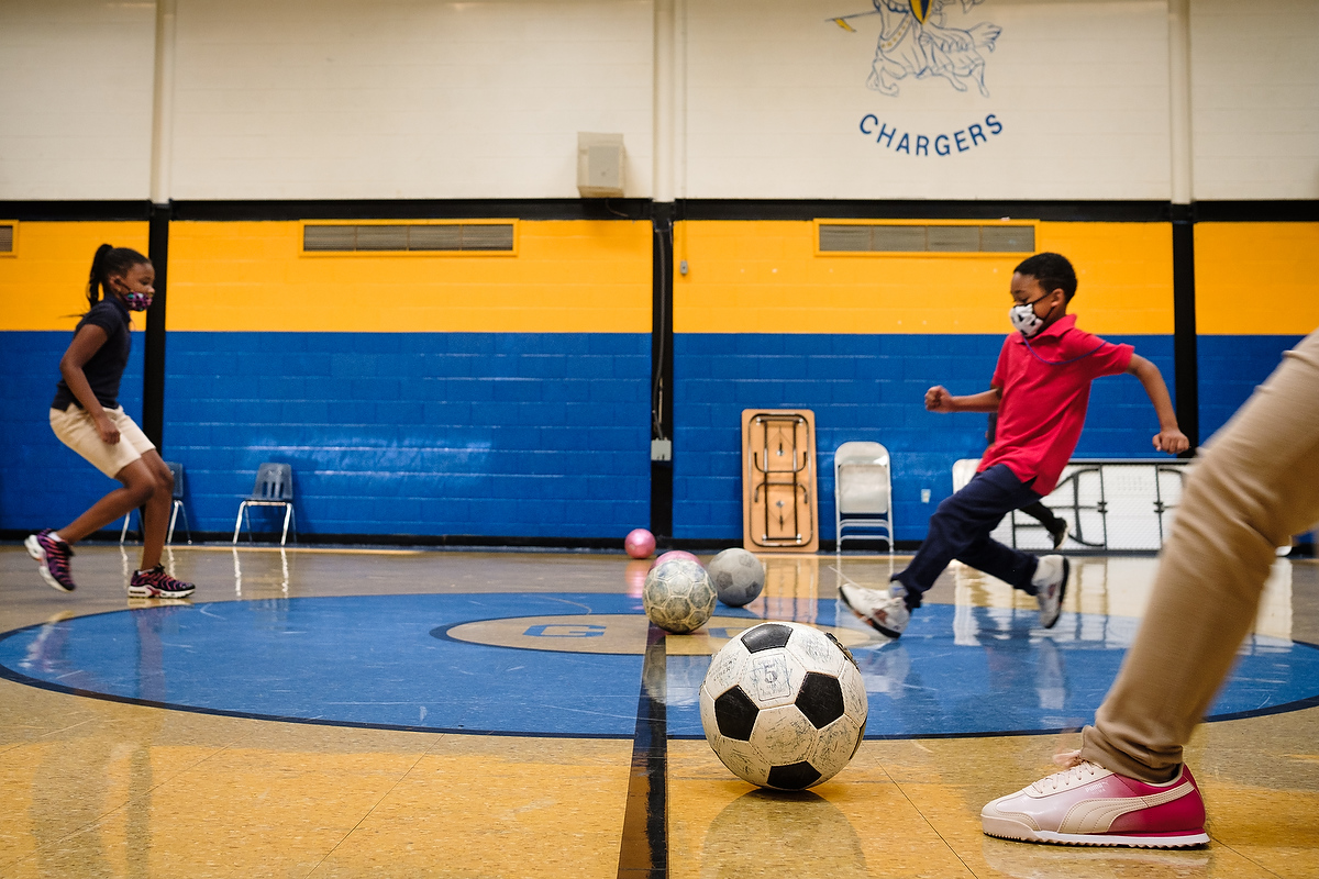 Teachers also have to remind students — especially the younger ones — to wear their masks properly and stand patiently in the designated spots along the hallway. “Social distancing and no sharing is hard … of course the kids gravitate toward each other,” Hanson said. “They want to play, and they want to be with each other.”