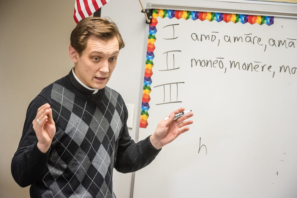 The Rev. Robert Paul, associate pastor and headmaster, teaches class.