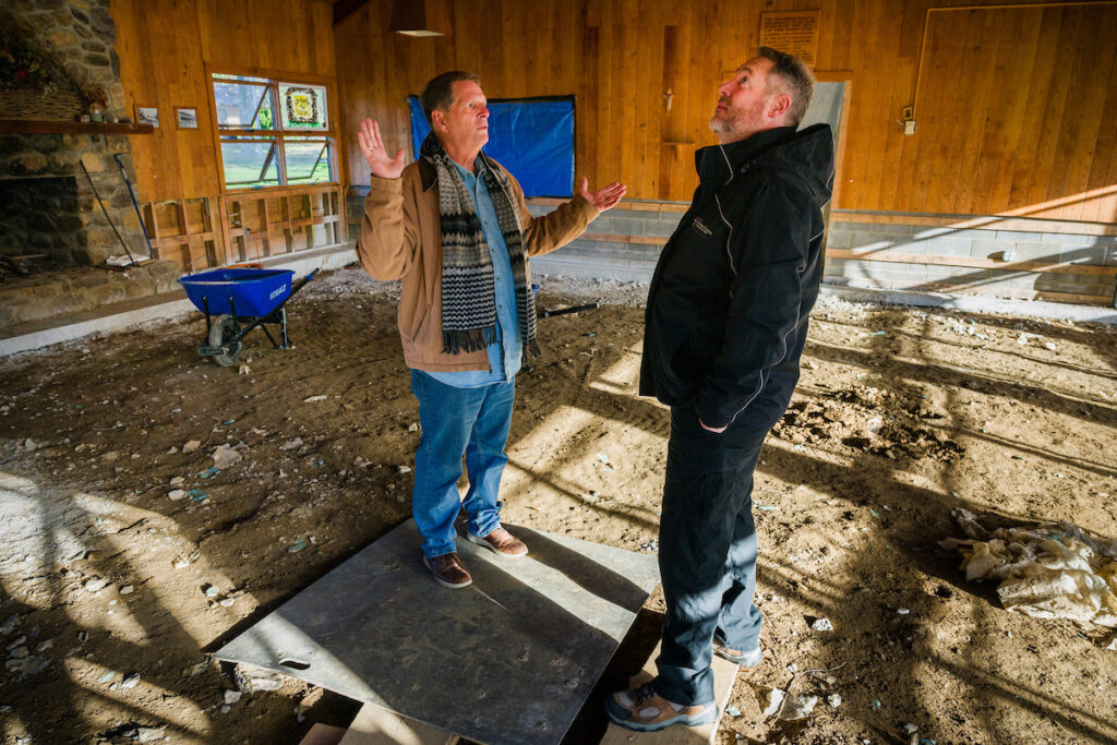 Eric Macke, whose classroom was rendered unusable by the flood, was a part of the weekslong recovery work at Grace. “It’s been a lot of good bonding. While you’re picking up sticks and cutting a tree down, what are you doing? You’re talking to your fellow Christian. You’re getting to know them better,” said Macke.