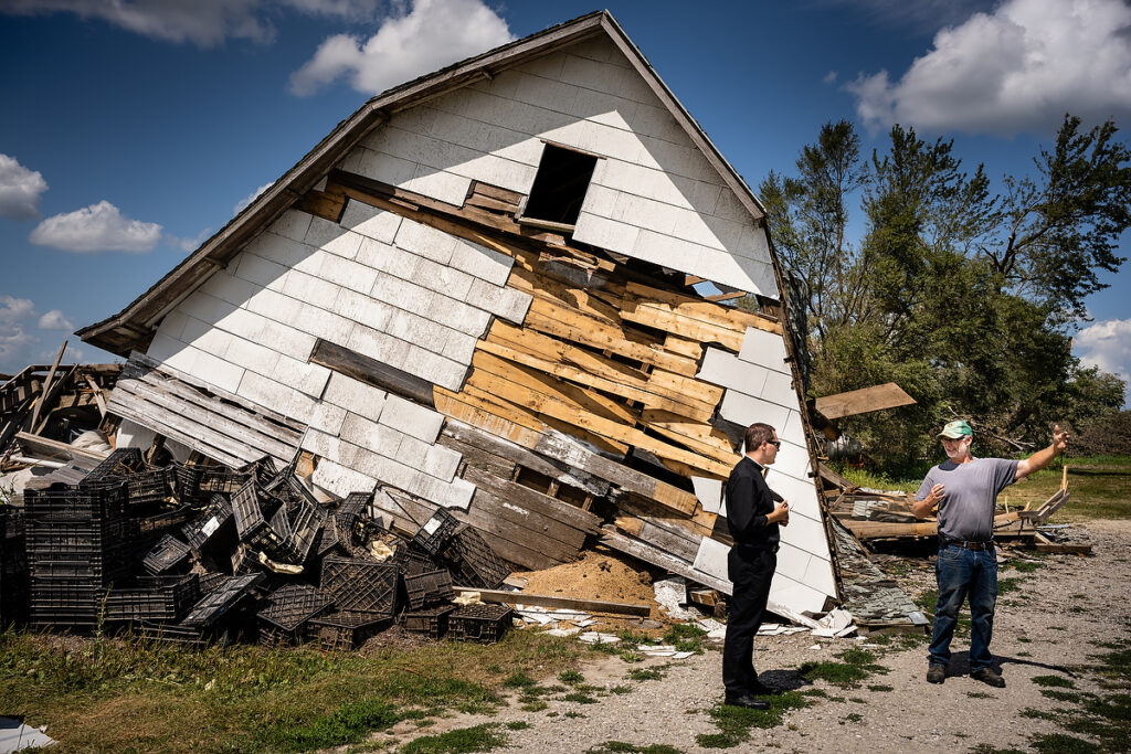 The “derecho” windstorm that tore through Iowa on Aug. 10 brought hurricane-force straight-line winds of up to 112 mph. Within half an hour, the rural landscape changed, as flattened and crushed barns, silos and farm equipment were spread across fields not only in Keystone, where Franzenburg lives, but across the state. Millions of acres of corn and soybeans were destroyed.