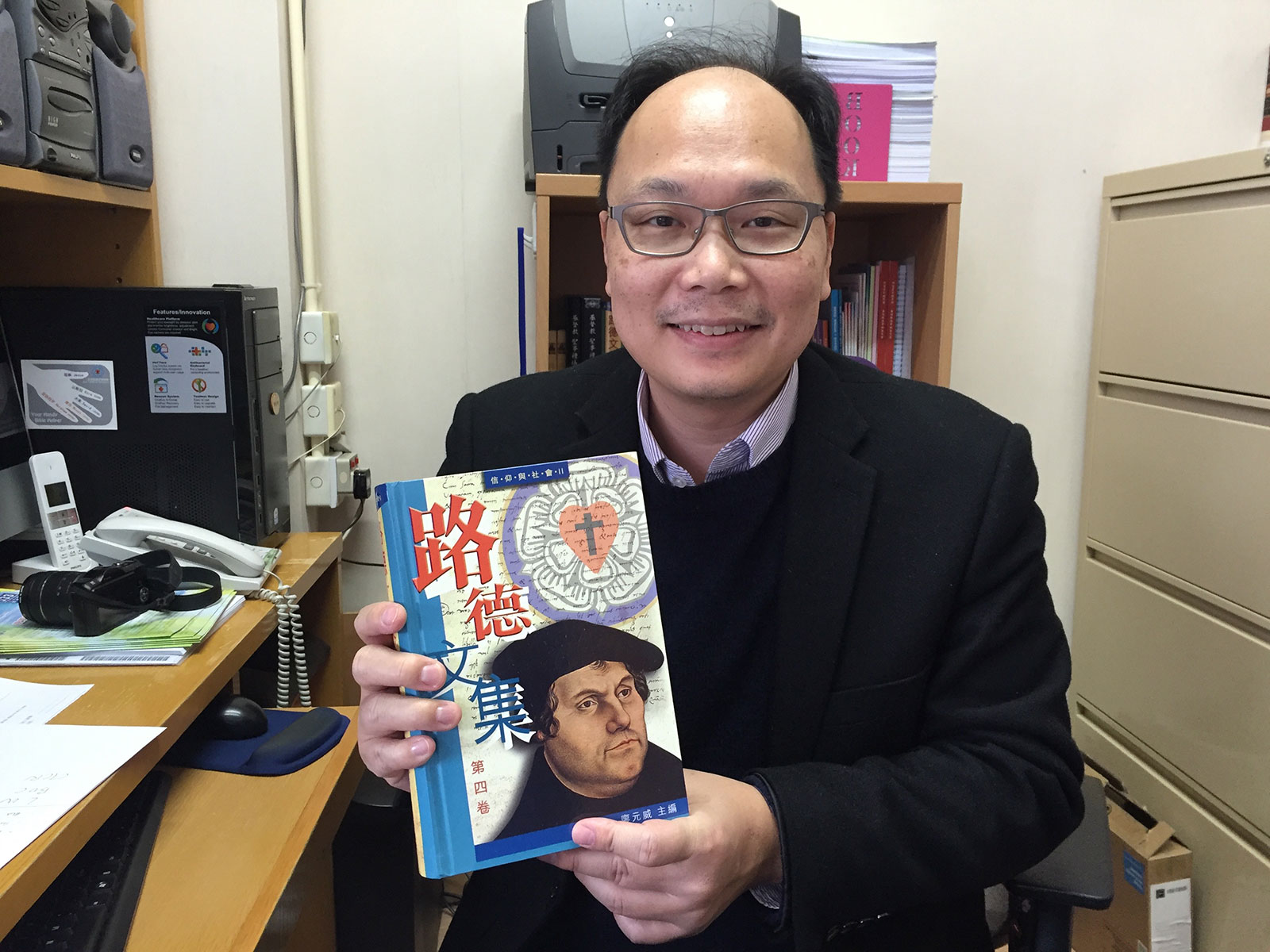 The Rev. Sam Yeung, director of the Literature Department of The Lutheran Church—Hong Kong Synod, holds a copy of Volume 4 of the Chinese Edition of Luther’s Works.
