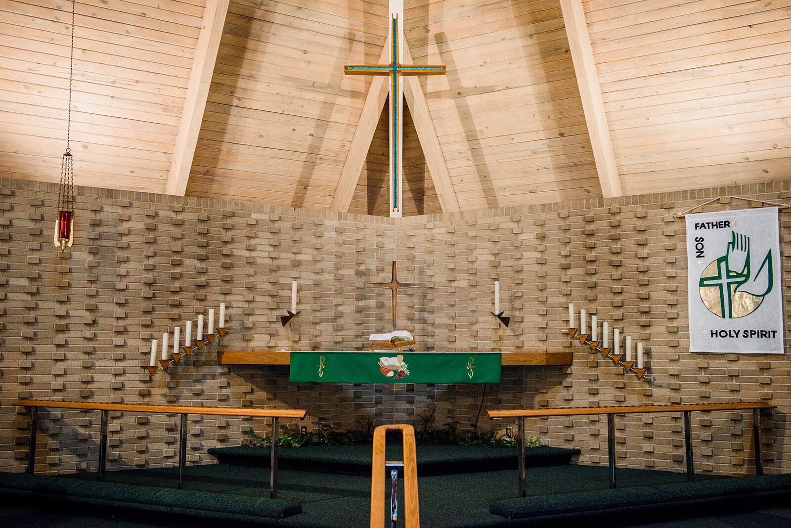 The altar of Benediction Lutheran Church. Its six-sided structure is influenced by worship structures of the Old Testament.