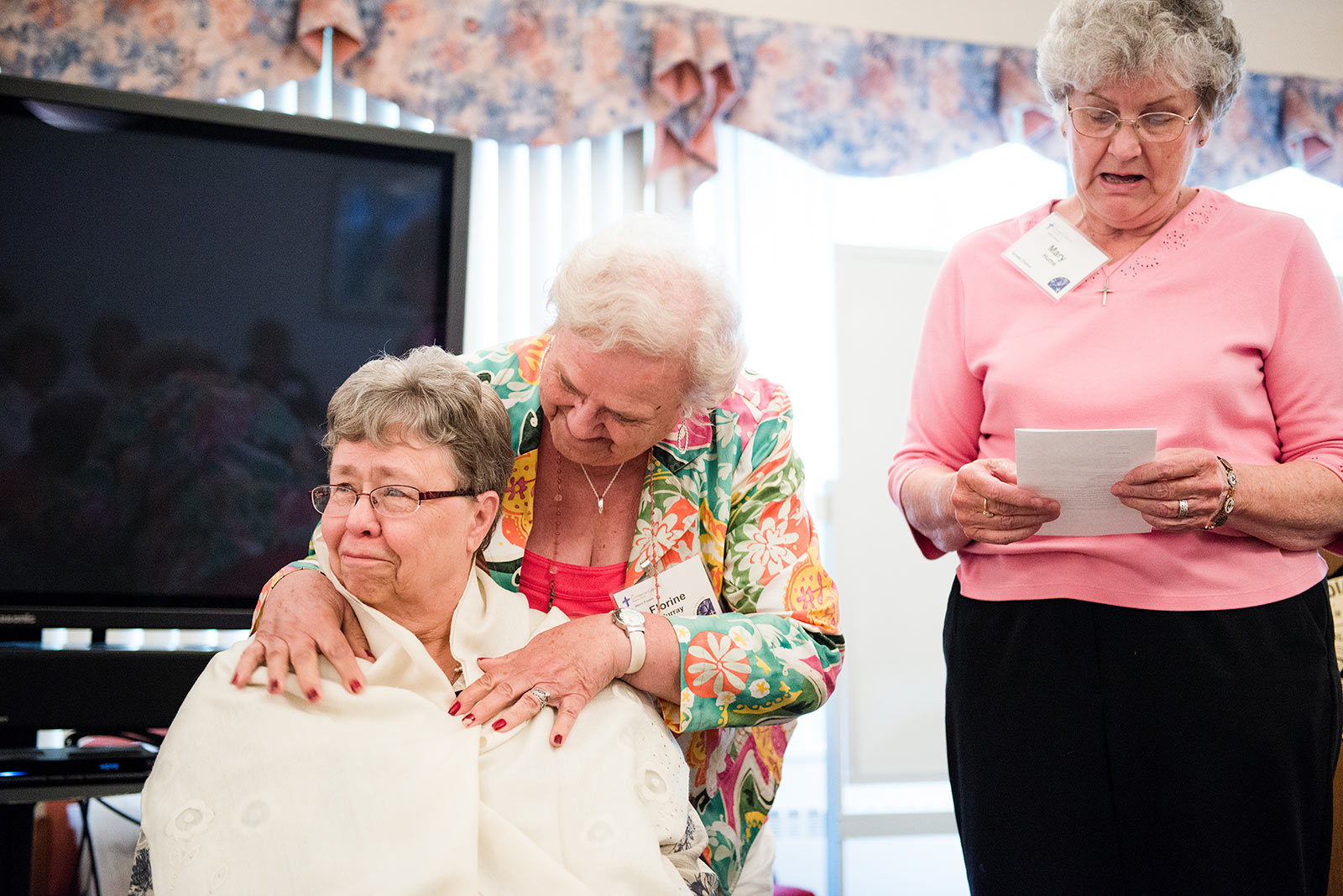 Dr. Marcia Schnorr (seated) is celebrated by her colleagues Florine Murray and Mary Hume (right) for her years of service during a break in activities at an LCMS Parish Nurse District Representatives event at Concordia University Wisconsin, Mequon, Wis.