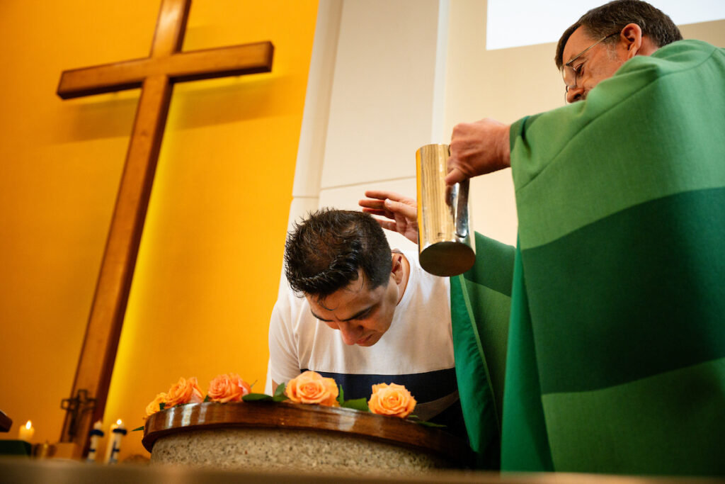Water gushed from a flagon, splashed over Sebastian’s head and sloshed into the silver bowl, spattering the wooden baptismal font and floor, as the pastor said, “Ich taufe dich im Namen des Vaters und des Sohnes und des Heiligen Geistes. Amen.” (“I baptize you in the name of the Father and of the Son and of the Holy Spirit. Amen.”) Moments before, in his native tongue of Farsi, Sebastian renounced the devil and all his works and all his ways. He also renounced “Islam, Muhammad and the 12 imams, including Jamal Ali.”