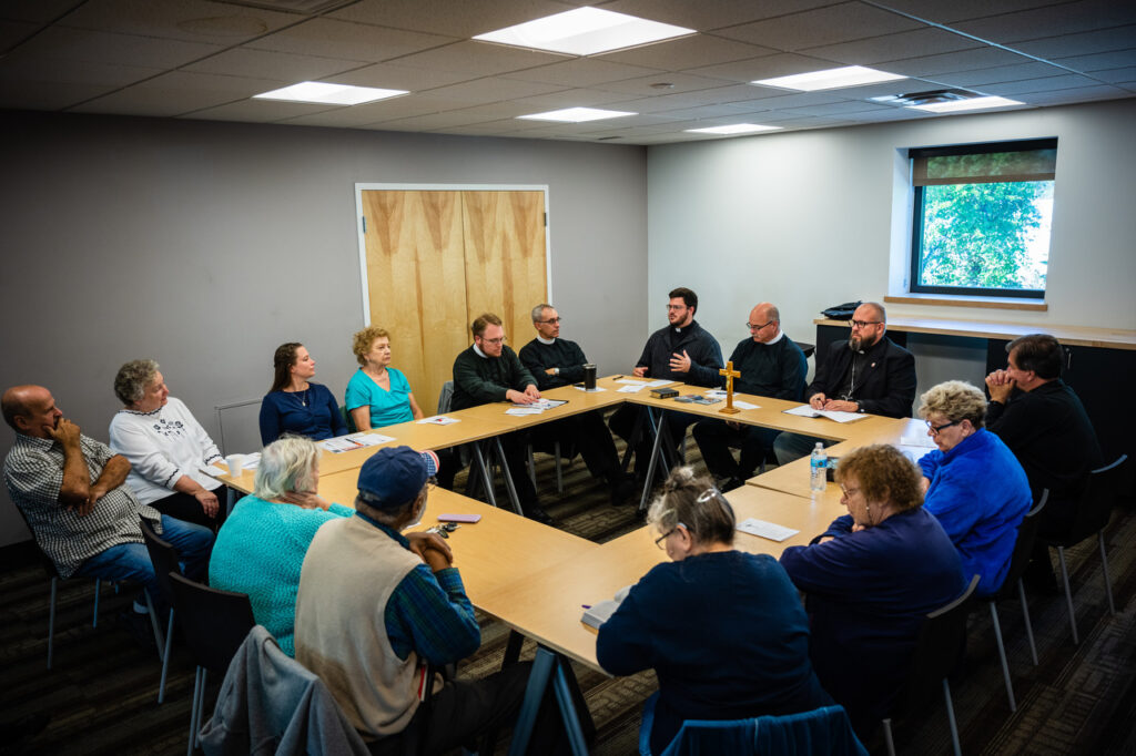 On a recent Saturday morning, in a room at the local library, Brooks and the others gathered with Spittel and Kern — who have brought along their district president, Bishop Jamison Hardy of the LCMS English District — to discuss the next steps.