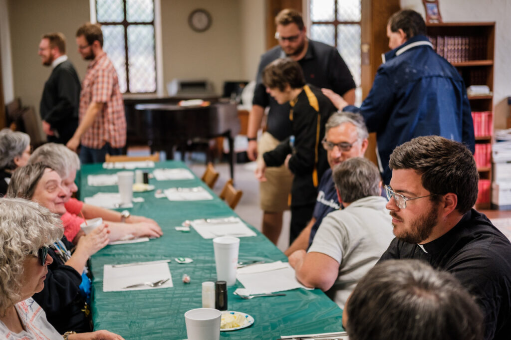 Vicar Timothy Kern chats during a meal at Pittsburgh Lutheran Center for the Blind.