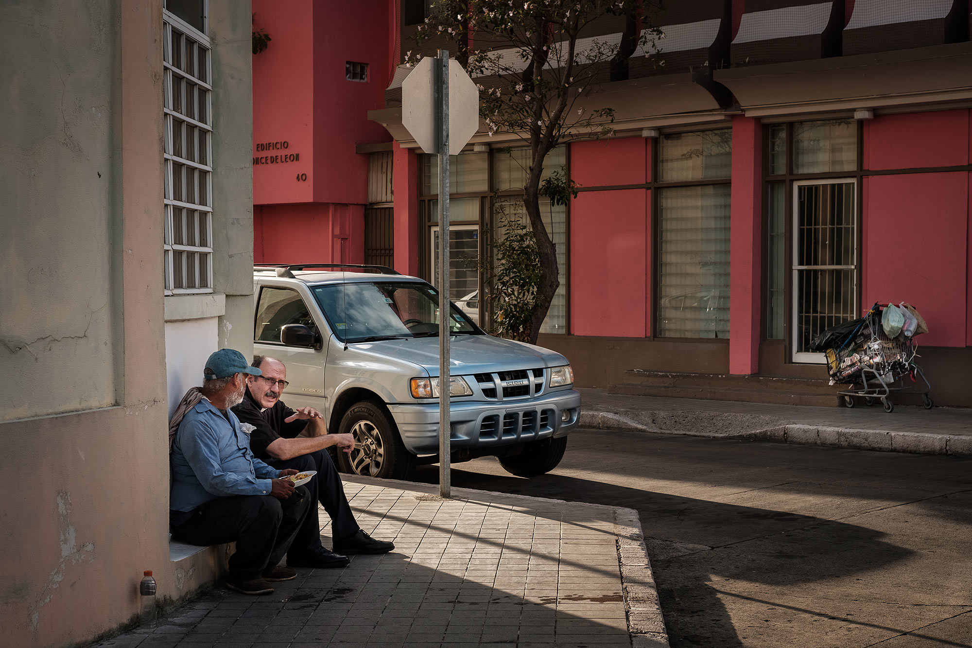 The Rev. Richard Schuller, LCMS missionary to Puerto Rico and pastor of Fuente de Vida (Fountain of Life) Lutheran Church in Ponce, sits with a homeless man on a street corner across from the church. Schuller brought the man a plate of food from the church’s fellowship meal.