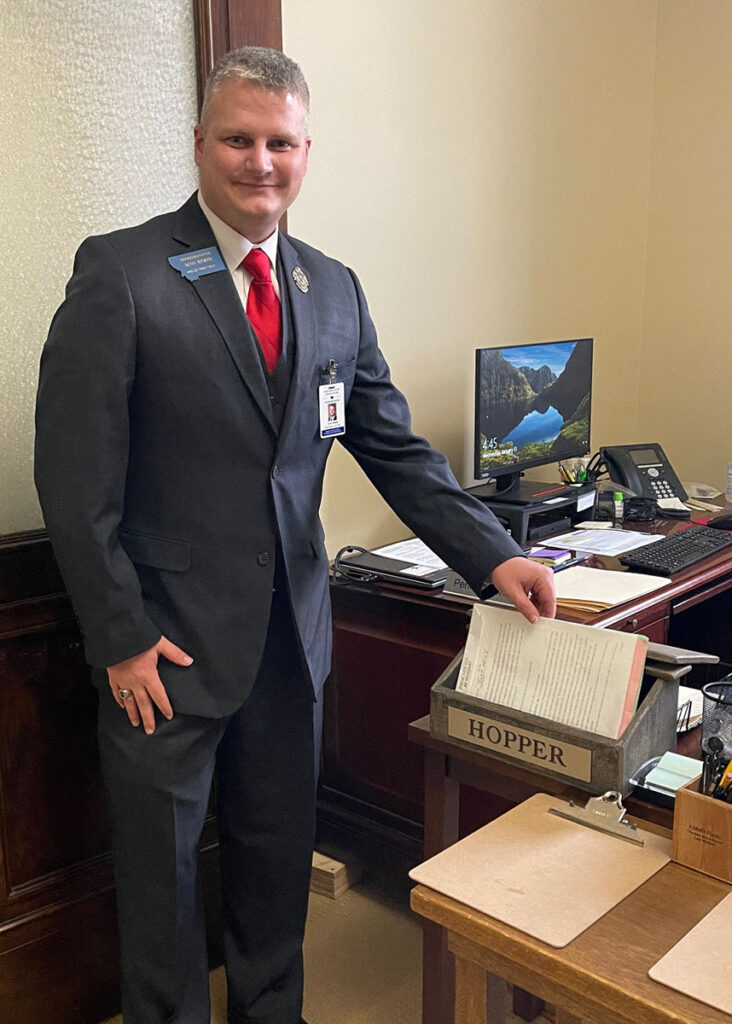 A: While the Legislature is in session, I typically work Monday through Friday and some Saturdays, usually starting at 7 or 8 a.m. and going frequently late into the night. Once the week’s over, I head back to Great Falls and get ready for church services on Sunday. I do church services both at 9 a.m. and at 11 a.m., with a half-hour drive in between the churches. After church, I usually take a pastor’s nap and get back on the road to Helena, and then I get ready for the week to start all over again. Not to mention doing pastoral visitations and working on college homework in my spare time.