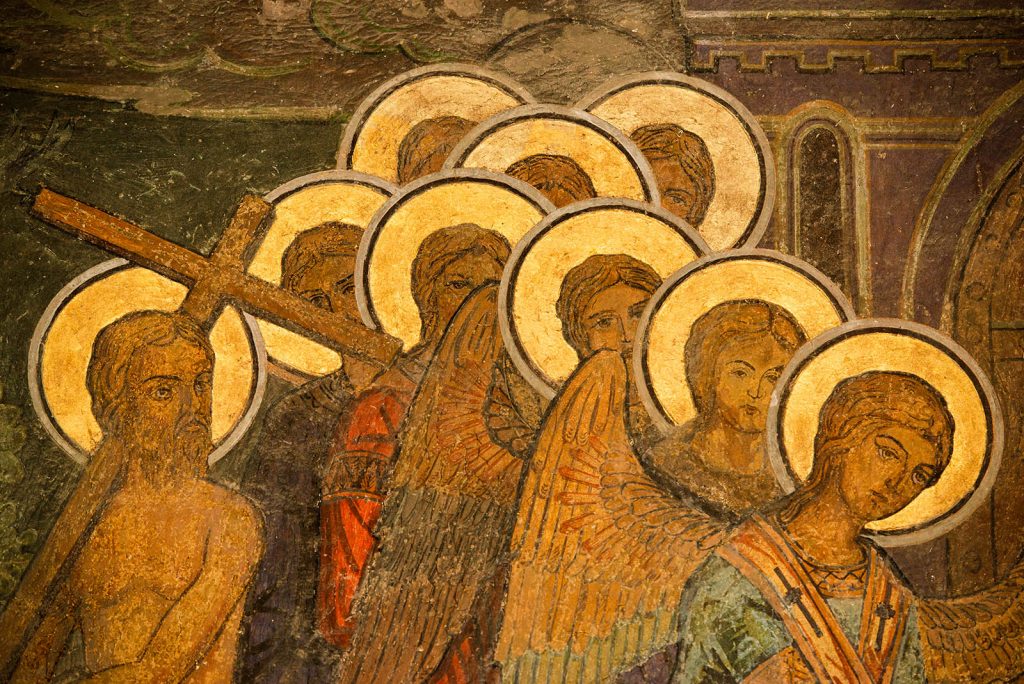 - Painted artwork on the exterior walls of the Romanian Orthodox Patriarchal Cathedral in Bucharest, Romania.