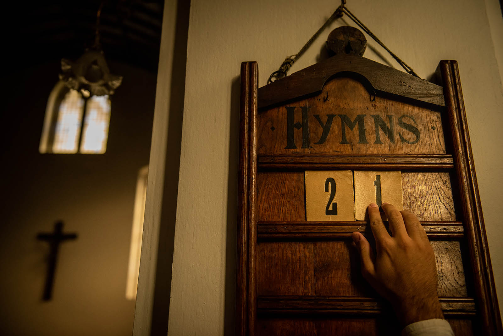 - Trifa’s son, Sergiu, arranges the hymn board before worship.