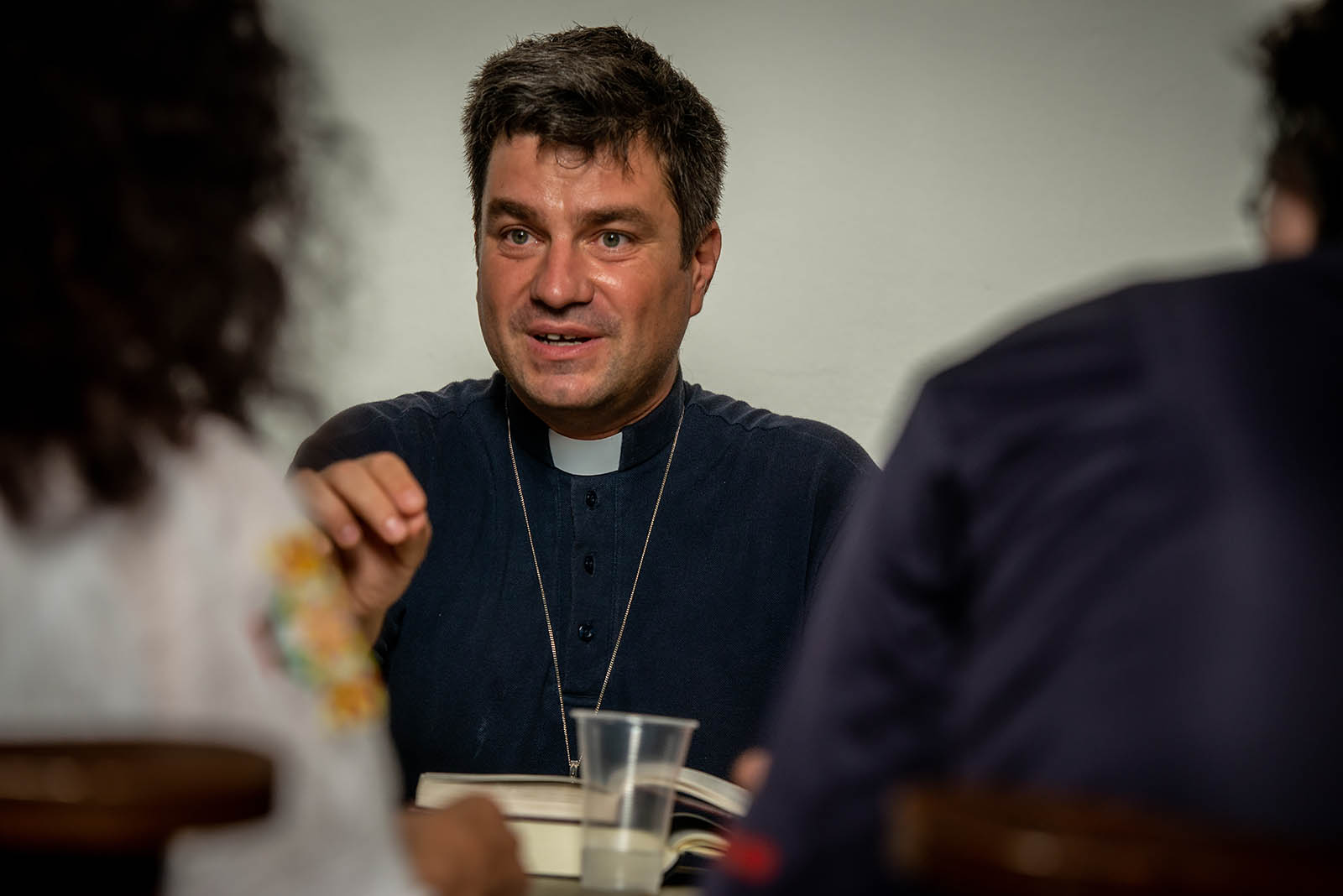 The Rev. Sorin-Horia Trifa, pastor of the Confessional Lutheran Church in Romania, leads Bible study before worship in Bucharest.