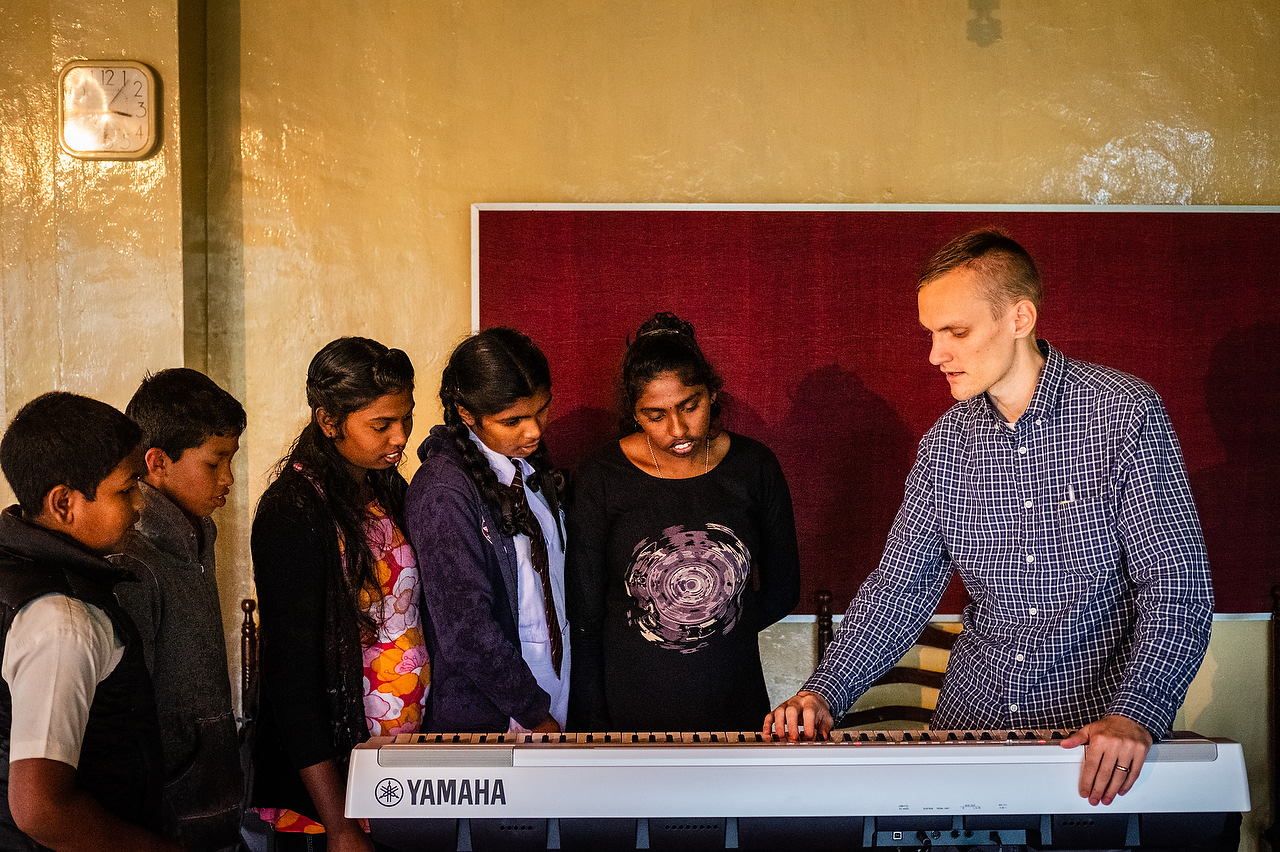 Vanderhyde teaches music to students at the Lutheran center in Nuwara Eliya.