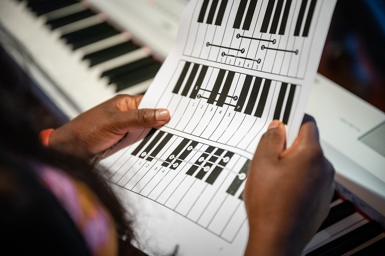 Music students, some from the nearby Lutheran congregation in Eila, listen during a lesson.