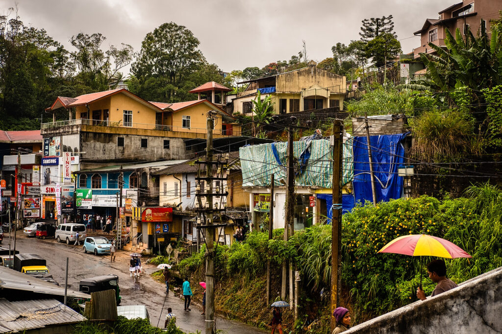People walk through the Edinburgh Estate in Nuwara Eliya, Sri Lanka.