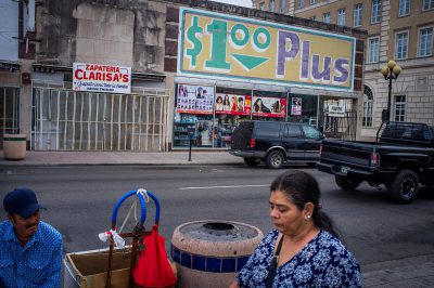 A few blocks away, aging building line the downtown streets. Once-grand storefronts, built more than a century ago, offer food, clothing and other colorful merchandise. The plethora of items draws a steady stream of Mexican citizens over the Rio Grande River border bridge. Car trunks, backseats and pushcarts overflow with items carried back.